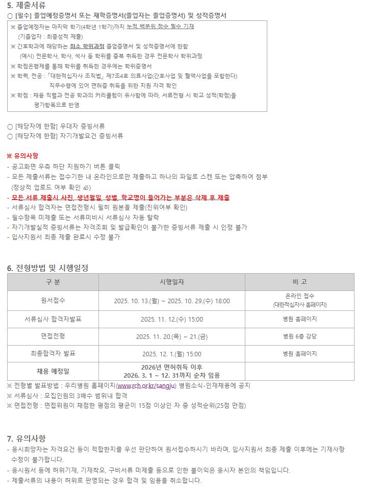 [상주적십자병원] 2026 신규간호사(졸업예정자) 모집