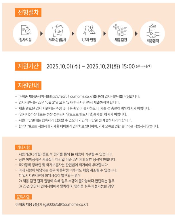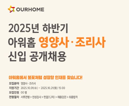 2025년 하반기 아워홈 영양사·조리사 신입 공개채용