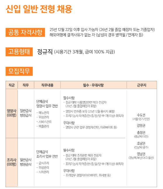 아워홈 채용 : 2025년 하반기 아워홈 영양사·조리사 신입 공개채용 - 인크루트 채용정보
