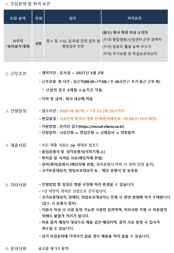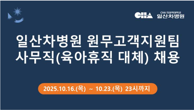 [일산차병원] 일산차병원 원무고객지원팀(사무직, 육아휴직 대체) 채용