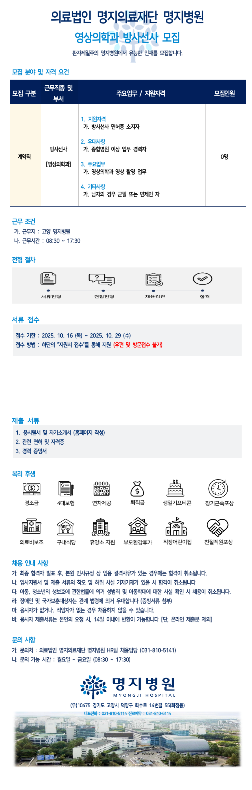 의료법인명지의료재단 영상의학과 방사선사 모집
