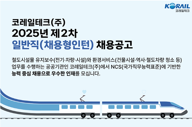 코레일테크(주) 2025년 제2차 일반직(채용형인턴) 채용공고