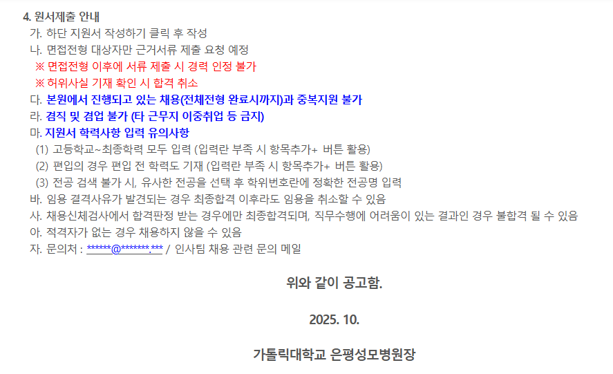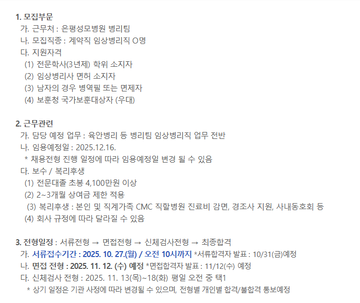 [은평성모]병리팀 임상병리직 (계약직) 모집