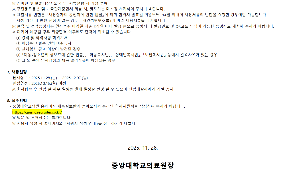 [대전] 2025년도 신규간호사(면허 취득 예정자) 공개채용 모집공고