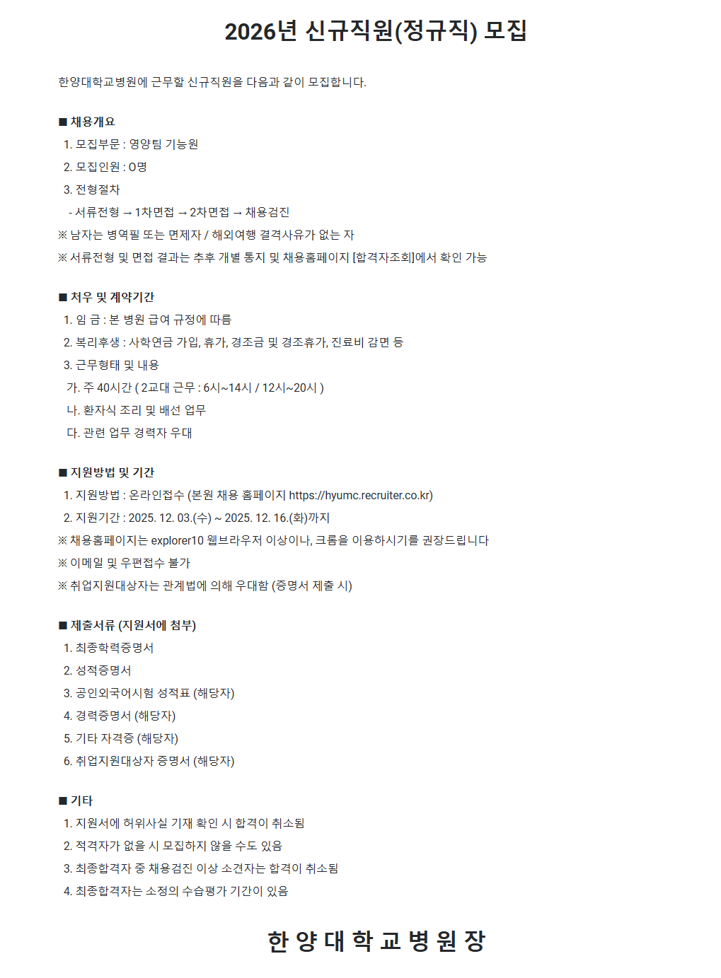 고려대부속안산병원 원무팀(외래파트) 계약직 직원 모집