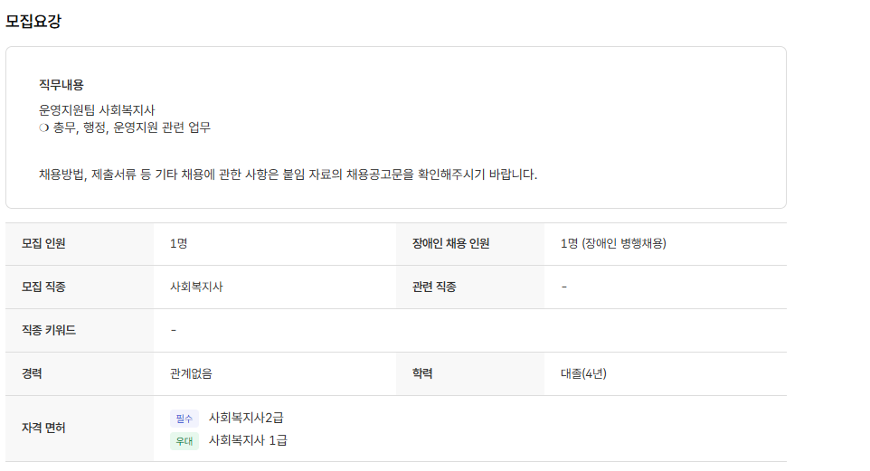 ❍ 사회복지사 1급 자격 소지자 우대
