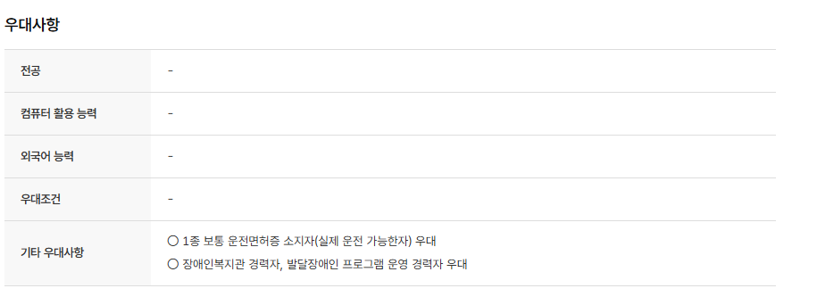 ❍ 복지시설 근무 경력자 우대