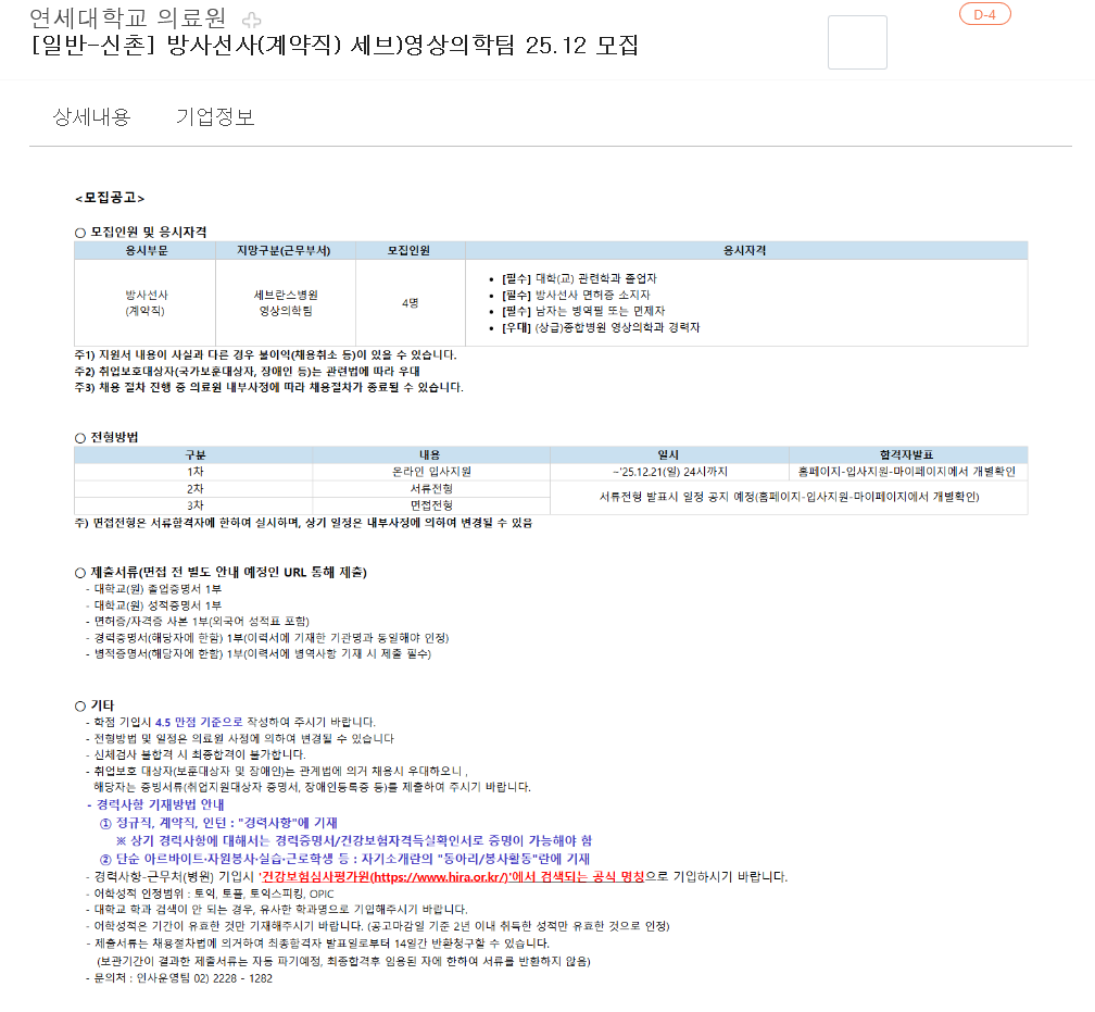 [연세대학교 의료원 일반_신촌) 방사선사(계약직) 채용공고