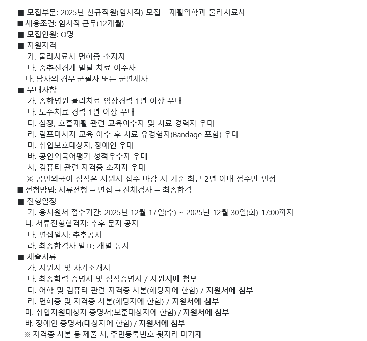 [한양대학교 구리병원] 재활의학과 물리치료사