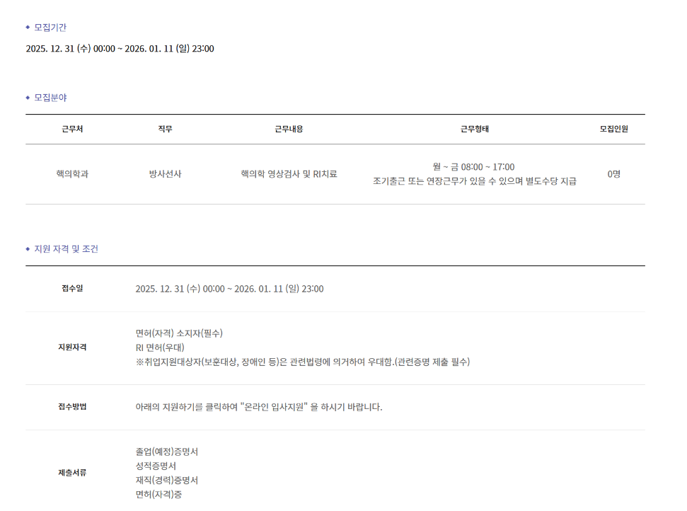 [동아대병원] 건강증진지원과 임시직 임상병리사 채용 공고