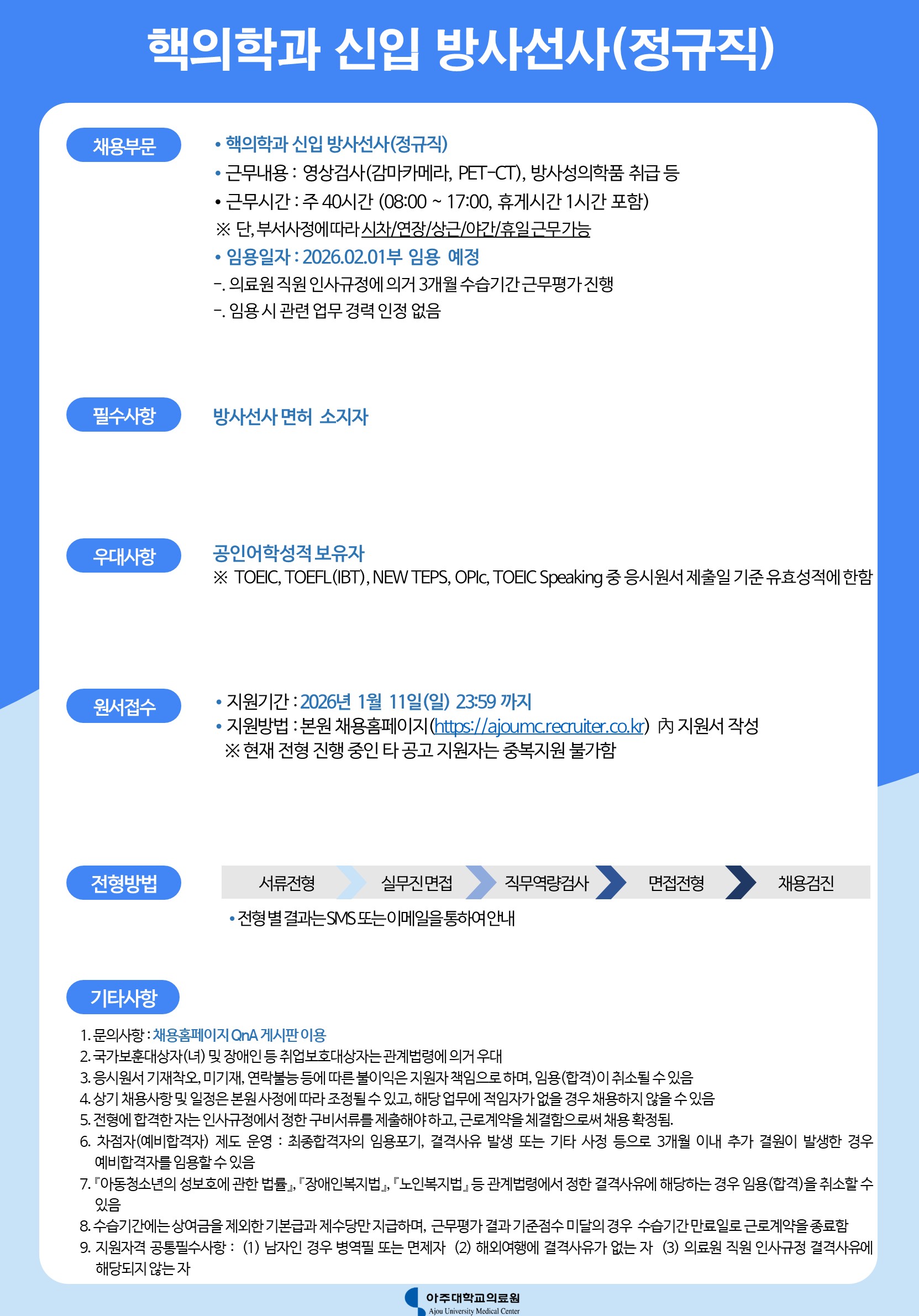아주대학교의료원 핵의학과 신입 방사선사(정규직)