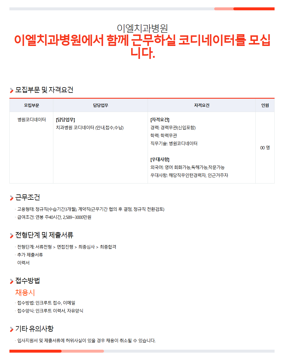 이엘치과병원에서 함께 근무하실 코디네이터를 모십니다.