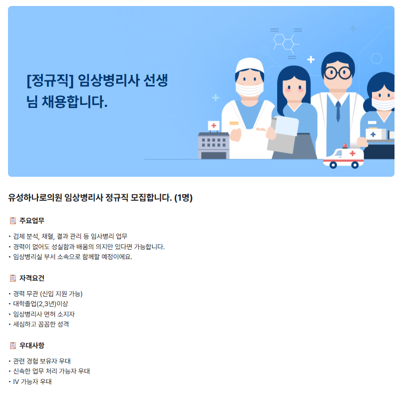 하나로의원 임상병리사 채용(대전)