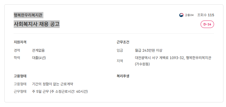 행복한우리복지관 사회복지사 채용 공고