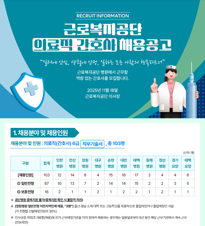근로복지공단 채용 : [근로복지공단] 2026년 의료직(간호사) 신규채용 공고 - 인크루트 채용정보