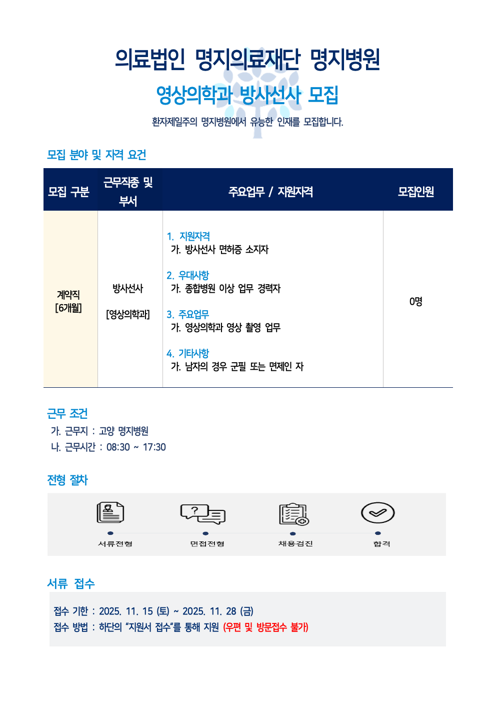 의료법인명지의료재단 영상의학과 방사선사 모집