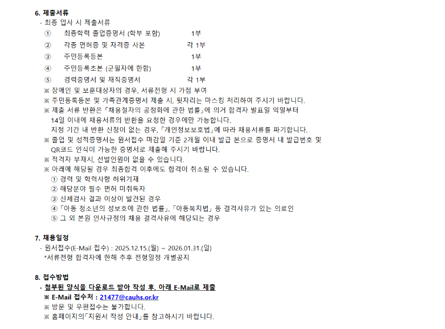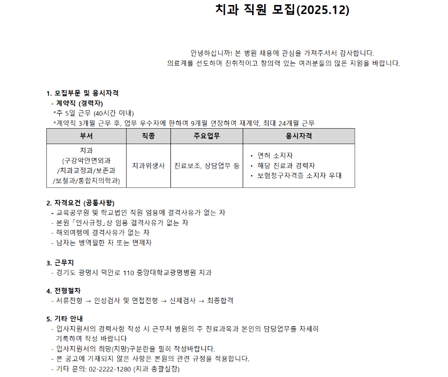 [중앙대학교병원] 중앙대학교 광명병원 치과위생사 직원모집