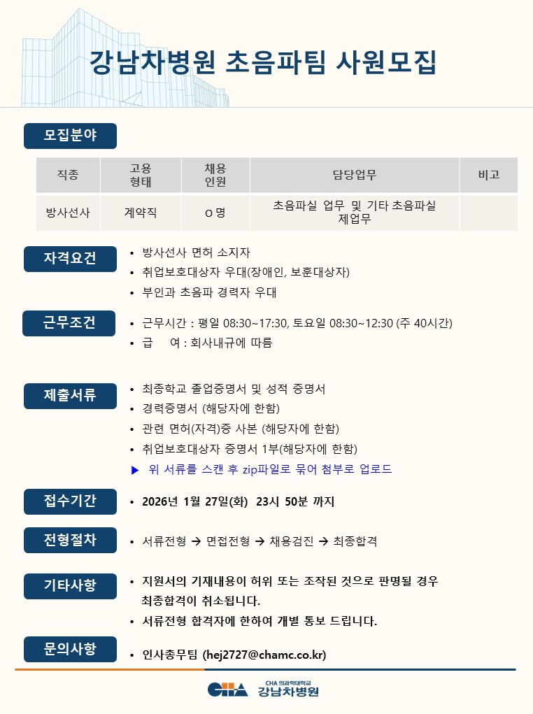 [중앙대학교병원] 중앙대학교 광명병원 치과위생사 직원모집