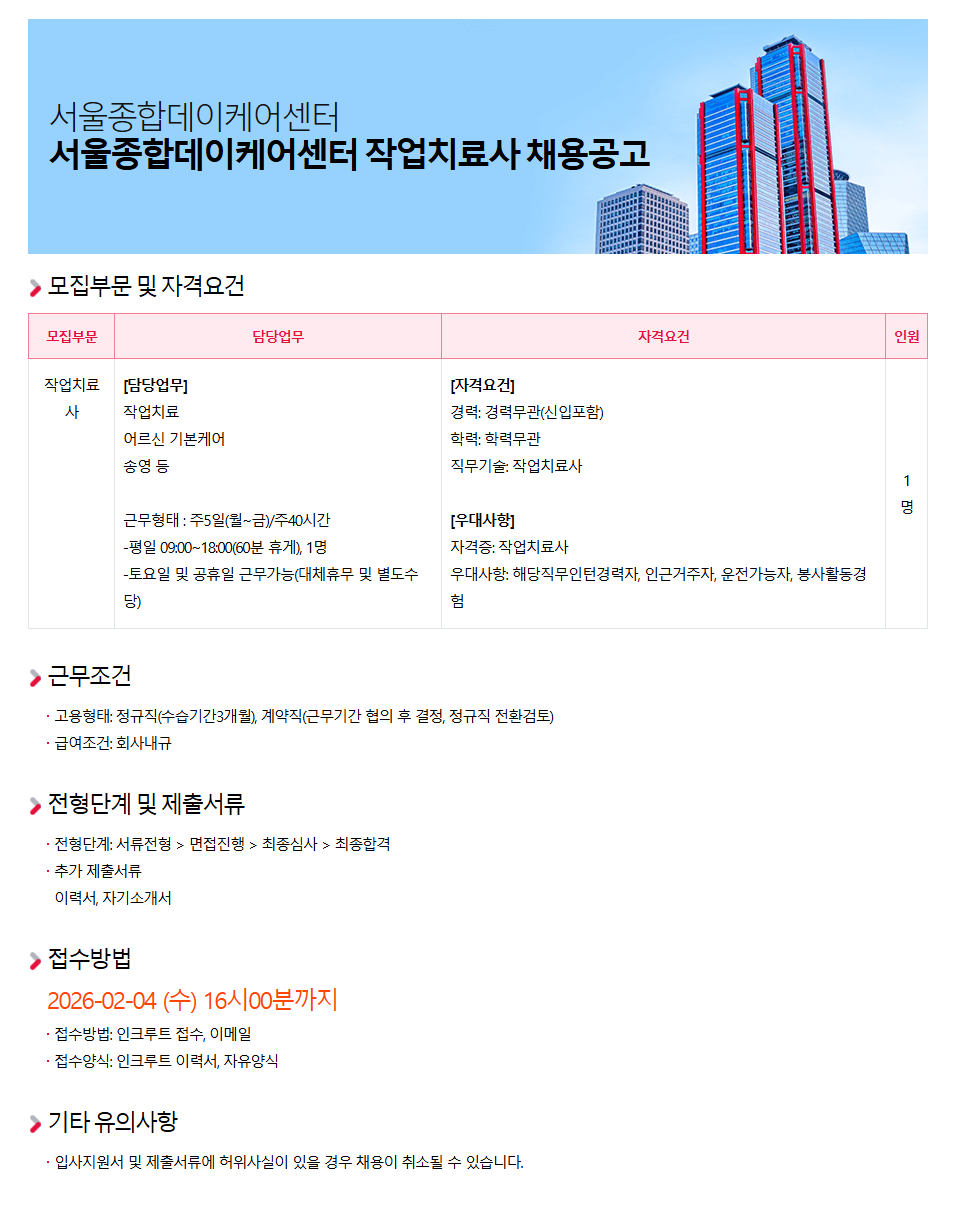 서울종합데이케어센터 작업치료사 채용공고