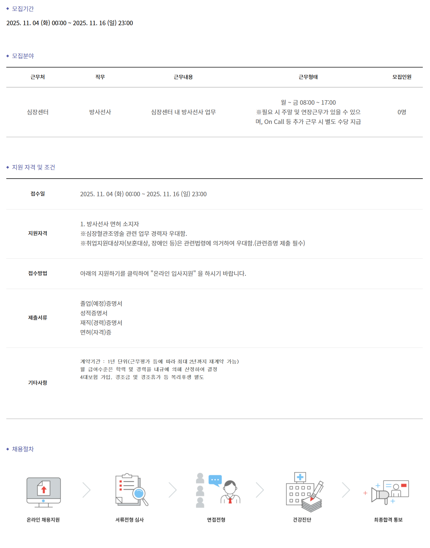 삼성서울병원 2025년 하반기 의료기사직(방사선사) 신입사원 채용