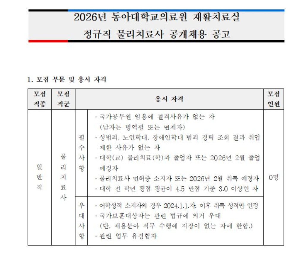 [동아대학교의료원] 재활치료실 물리치료사(정규직)
