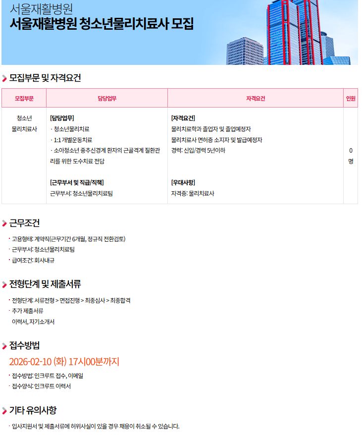 서울재활병원 청소년물리치료사 모집