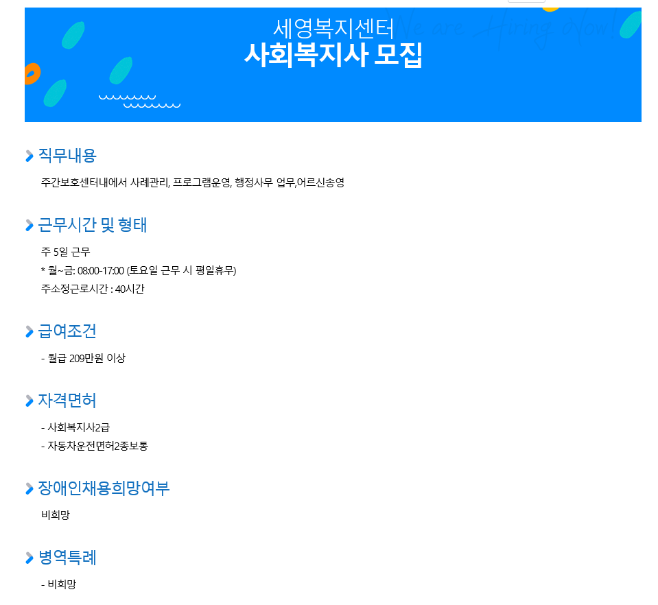 [익산 실버복지센터] 사회복지사 채용_ 계약직