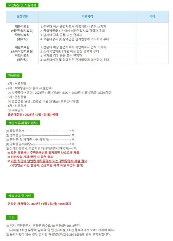 가톨릭대학교 인천성모병원 채용 : 재활치료팀(성인작업치료실, 소아작업치료실) 작업치료직(계약직) 채용 - 인크루트 채용정보