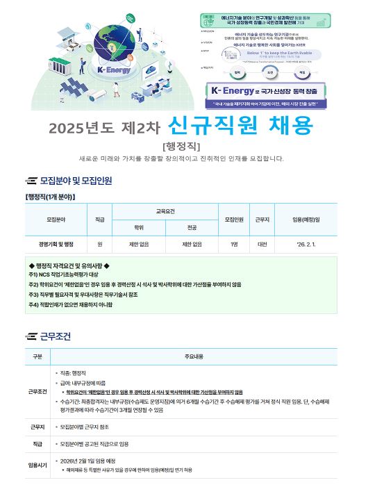 (한국에너지기술연구원) [행정직] 2025년도 제2차 신규직원 채용 대젼