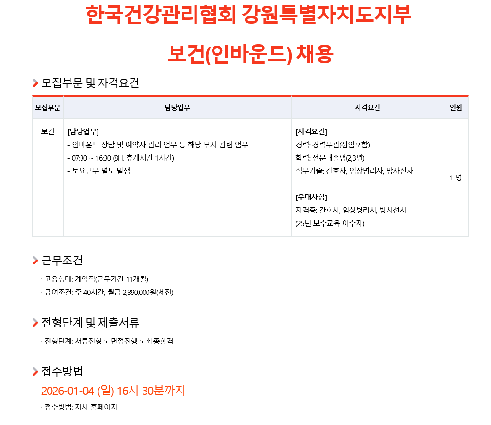 [한국건강관리협회 강원특별자치도지부 보건(인바운드) 채용