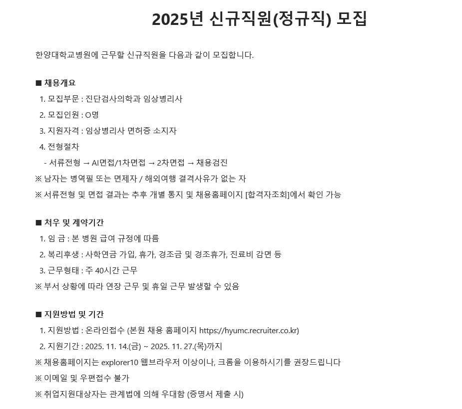[한양대학교병원] 진단검사의학과 임상병리사_정규직