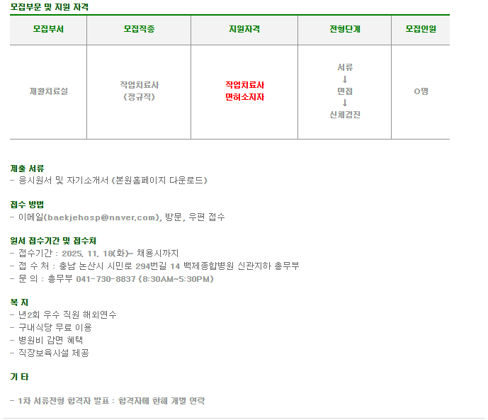 [논산시립노인전문병원] 작업치료사 채용공고