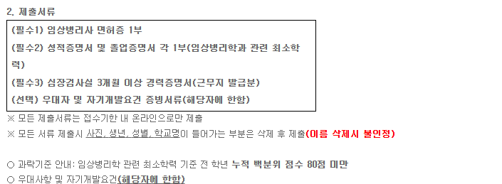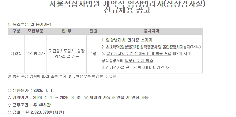 서울적십자병원 계약직 임상병리사(심장검사실) 신규채용 공고