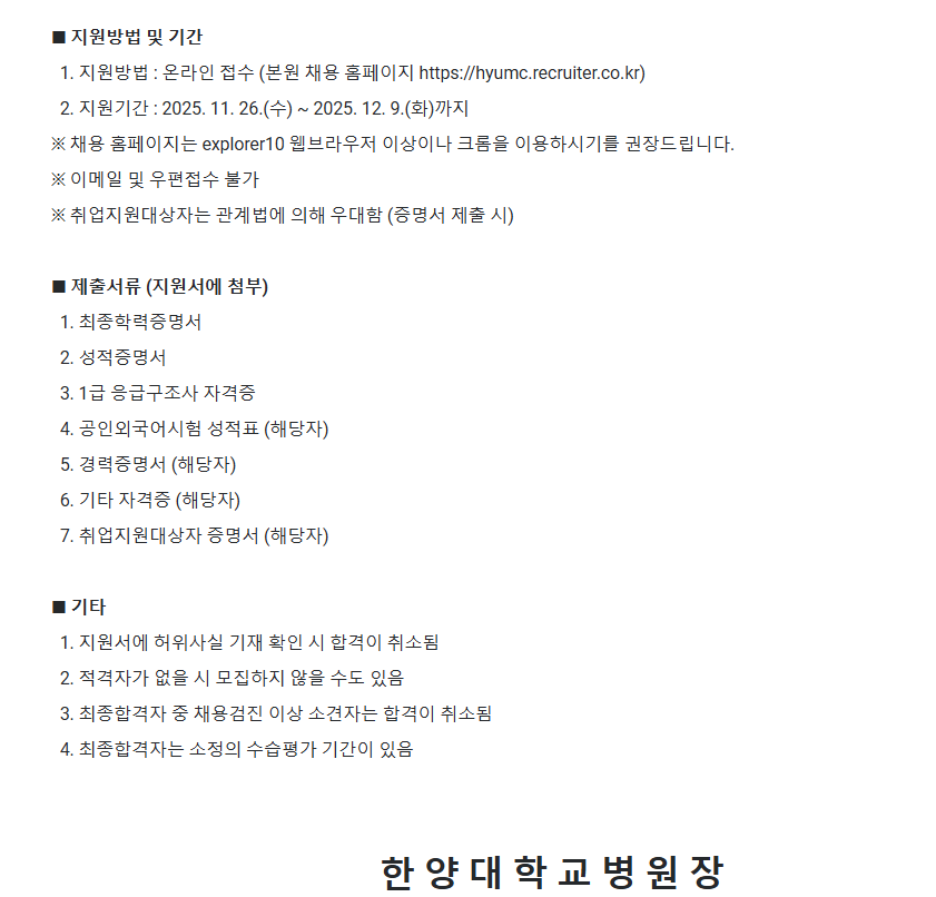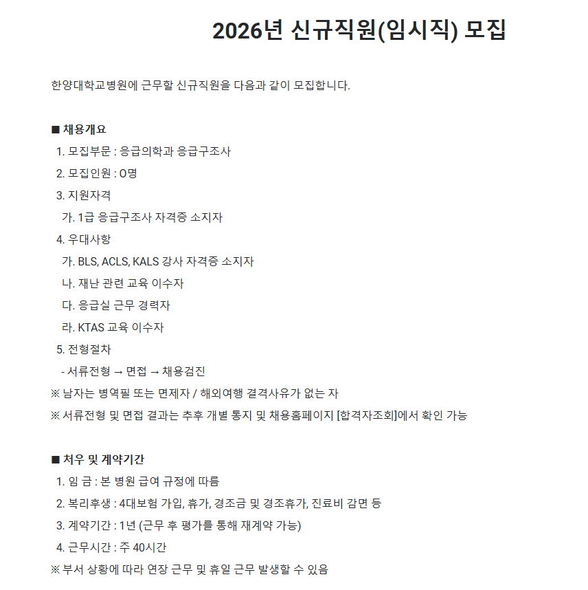 [한양대학교 병원] 응급의학과 응급구조사